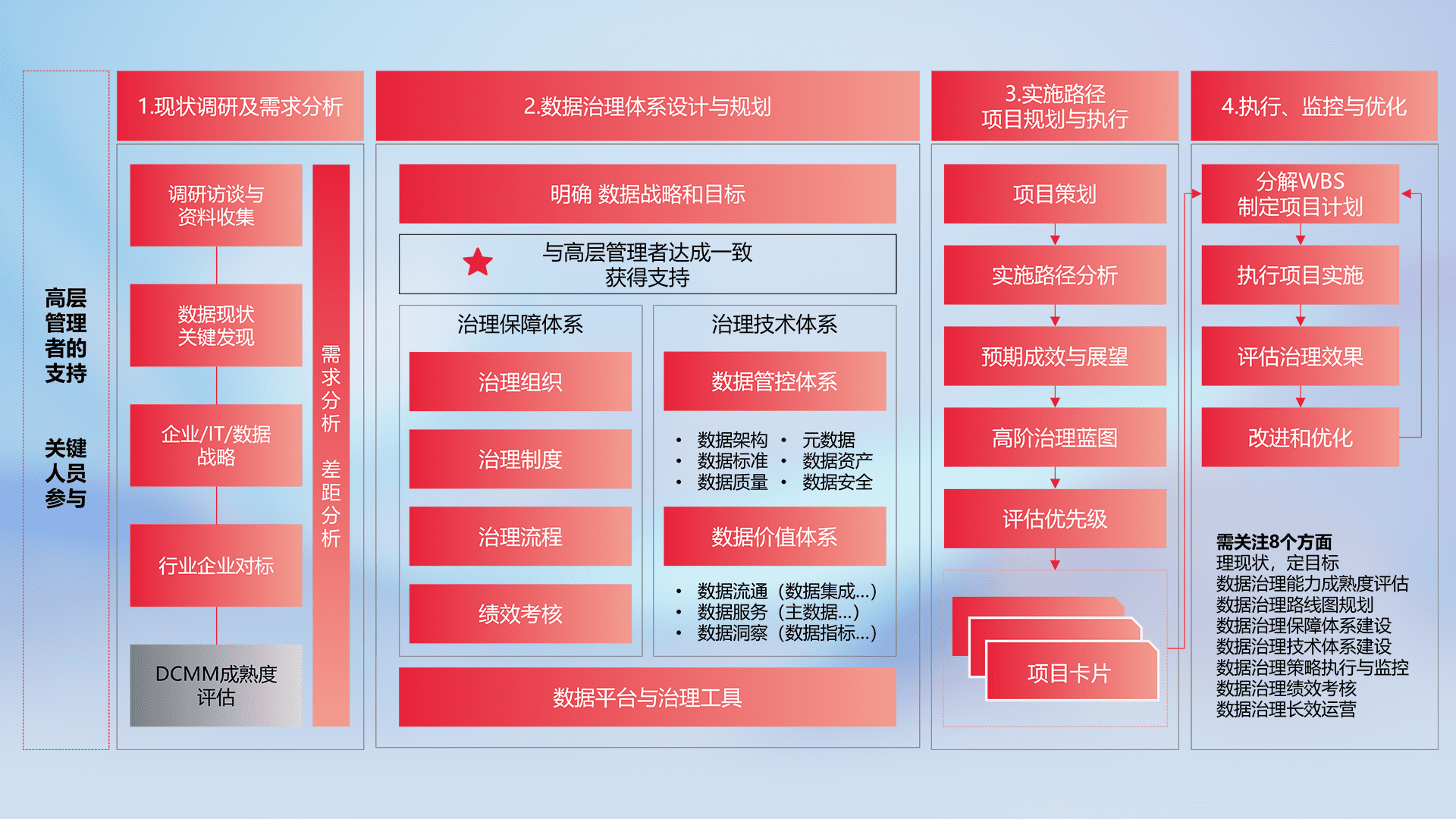 制定并执行统一的数据标准,,,规范数据定义和格式,,,消除冗余和不一致性,,,实现跨部门和跨系统的数据一致性,,为企业提供标准化的数据基础。。
