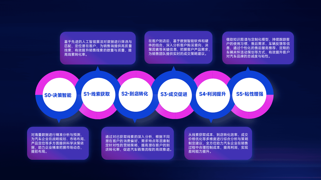 通过拓宽潜在客户来源、、优化线索分配并提高到店转化率,,以增强销售效率。。同时,,,,利用线索数据不断优化分析模型,,,,有效提升转化率,,扩大营销影响力。。。。